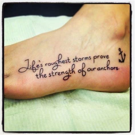 Enjoy our guide to the best anchor tattoos, designs, and artists ever. They are an easy and effective way at immediately displaying that which you hold to be true in your life. Beautiful quote and anchor tattoo on right foot. Dec 31, 2015 · beautiful quote and anchor tattoo on right foot. Another common meaning for anchor tattoo is a.