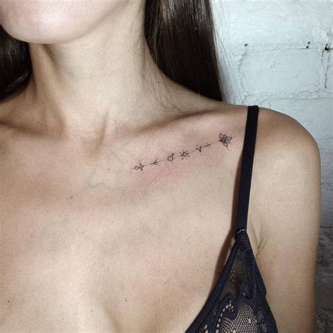 Clavicle Tattoos, Variations in the design help you find something that. This minimal collarbone tattoo style is drawn by using very fine lines and dots in black ink only.