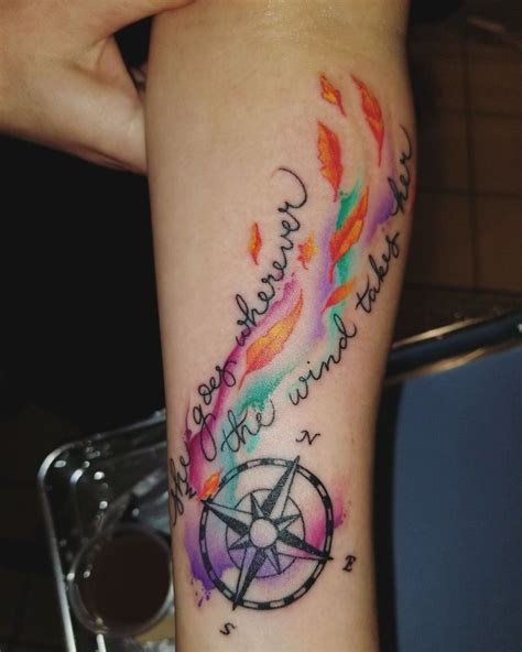 The tattoo has been inked in a shade of brown, with the wind blowing in the color of blue around the key. The color in a watercolor tattoo is used not to delineate sections of an image but to set a mood. Paint with all the colours of wind tattoo. Pocahontas is the only disney princess with a tattoo. This.