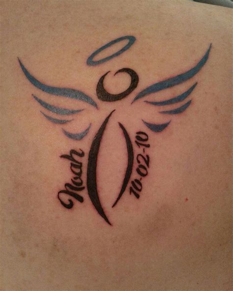 The tattoo features a name and date that is written in a stunning font. Daddy takes care of his little angel and is always there for her. Angels have held our fascination for centuries. They both have the same defining feature — wings. These winged beings take the form of androgynous humans, often depicted as aesthetically beautiful with wings.