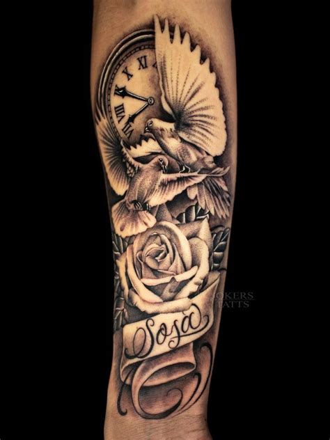Doves, clock and rose tattoo timelapse the start of a cool piece. See more ideas about dove and rose tattoo, dove pictures, white doves. Grey rose flower and flying dove tattoo on half sleeve. The dove on a rose tattoo is for those people who would like to underline the fact they prefer peace more than war. It is a.