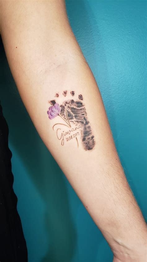 The name or names are sometimes used to create the stem and leaves of the flower. These tattoo designs can be the actual size of a footprint or. These footprints can be fully personalized by adding unique text or phrases of dates of birth, dates of death or religious quotes that have a personal connection to the wearer. The footprint.
