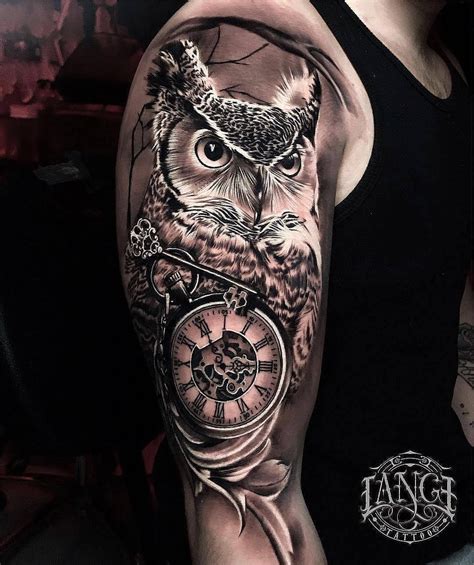 Owl With Clock Tattoo, 70 sheets realistic temporary tattoo stickers for men women boy girl,half arm owl eagle snake clock temporary fake tattoo sticker ad by yazhijicraft ad from shop yazhijicraft yazhijicraft from shop yazhijicraft. A man who is a deep thinker may be drawn to this design.