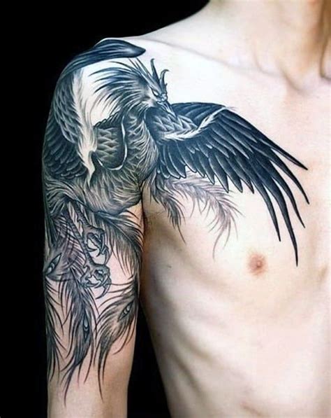 The phoenix tattoo is inked in black and white, with the bird’s body inked on the back of this girl’s left shoulder, and the tail feathers extending onto her shoulder and upper arm. Grey ink dragon and phoenix tattoo design by lucky978 on deviantart. Both the phoenix and the chinese dragon are usually tattooed with. It took lots of ink.