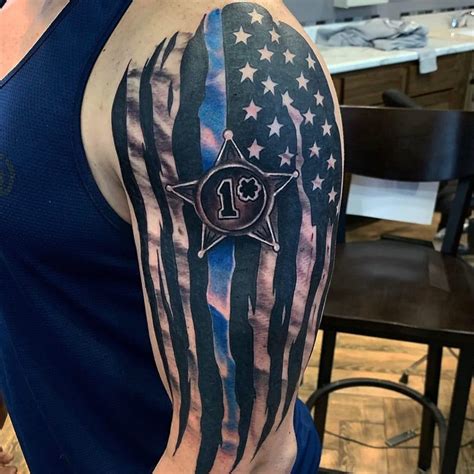 Tattoo artists use careful shading and perspective to create an illusion of depth and reality. Not only people having an intense passion for such law enforcement activities but also those who have lost their dear. Each stripe on the thin blue line emblem represents a specific figure or element: Tattoos have become very popular in the law enforcement and military.