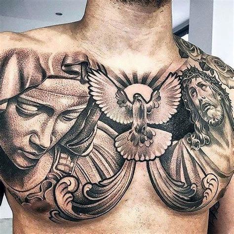 The russian cross and the celtic cross are also popular. Chest tattoos clouds cloud tattoos on the chest are incorporated with the religious theme, quotes, doves, and other objects. In christian culture, this symbol is inextricably linked to god, but it can also mean destiny because each person carries their own crosses. Religious tattoos on the chest. The crucifixion tattoo.