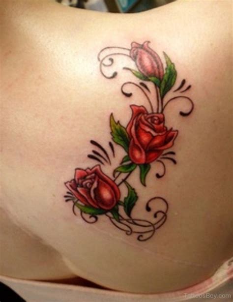 Full back rose tattoo designs for women. In the rose tattoo, there is a variety of colors and designs. Barbed wire around the rose vine: This also has a lot of colours. Elegant rose tattoos designs on back shoulder.