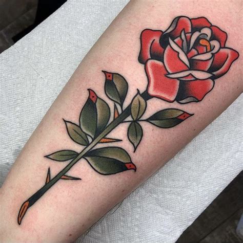 The rose tattoo here is done in american traditional style, giving it a cartoonish look due to the thick black outlines, the thorn elements, and the extra line detailing. By the 1930s, sailor jerry had left the navy and began working as a tattoo artist in hawaii. A pink rose, orange rose or even a purple rose can make your.
