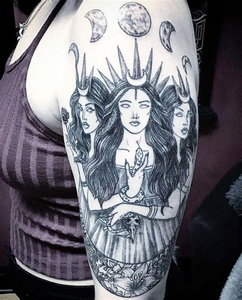 Triple goddess tattoos are the tattoo work of illustrator and printmaker joy shannon. This imagery could include a skull, black cat tattoo, the moon, the triple goddess, a broomstick, and/or pentagram symbols. For example, epona is the celtic horse goddess associated with fertility, while lenus is a celtic healing god. Women often choose a representation of the triple goddess or.