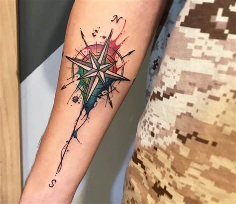 Watercolor wind rose tattoo on calf for man. Inner arm tattoos are the latest development. These tattoos are often minimalist, clean and they’re a great way to show your love for travel; It is called a compass rose, as these points look like the petals of a rose. Wind rose on the background of mandala pattern.
